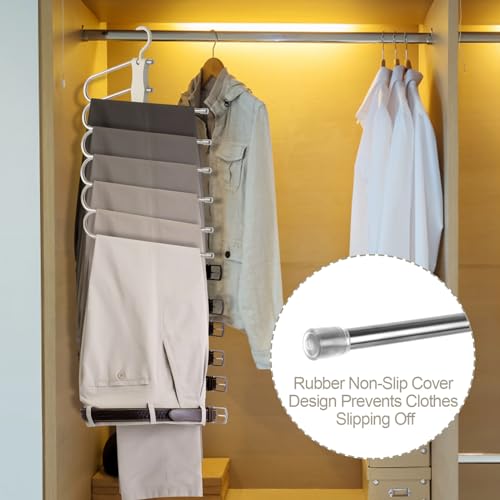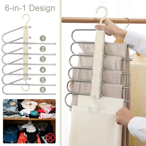 6 in 1 Grucce per Pantaloni, Risparmio di spazio Appendini Armadio, Antiscivolo Appendini Armadio, Grucce Pantaloni in Acciaio Inox Pieghevoli, Appendini Portatili Multifunzionali (1 Pezzi)
