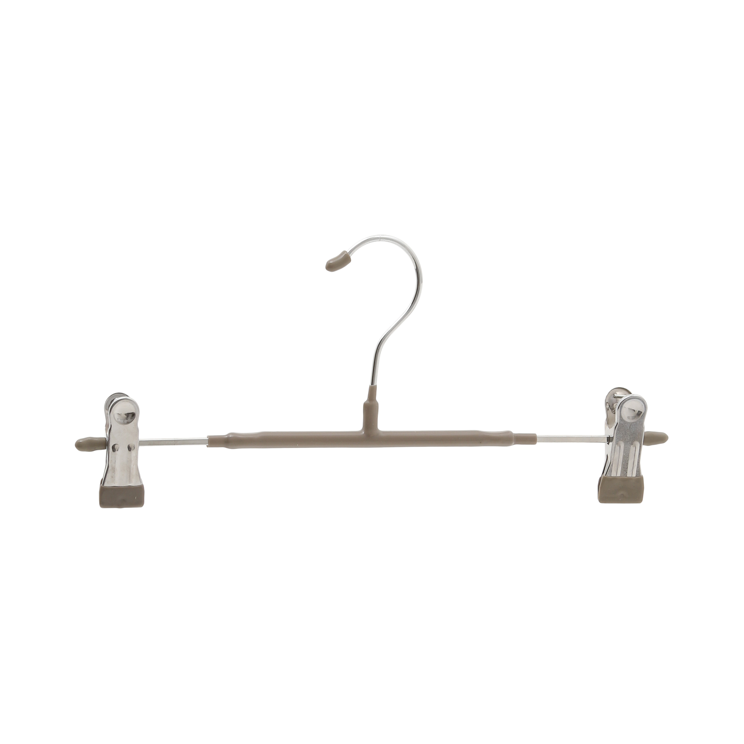 Set composto da 2 grucce con gancio e mollette, accessori ideali per appendere gonne e pantaloni senza pieghe. La superficie rivestita di gomma permette la massima aderenza e impedisce la formazione di segni sui tessuti.