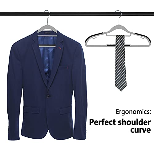 Grucce in plastica, TAOPE Set di 20 Grucce Antiscivolo, Salvaspazio & Gancio Girevole a 360°, Appendini per Cappotto per Cappotti, Giacche, Camicie, Gonne, e Pantaloni, Abiti - Grigio&Nero