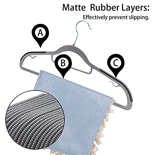 Grucce in plastica, TAOPE Set di 20 Grucce Antiscivolo, Salvaspazio & Gancio Girevole a 360°, Appendini per Cappotto per Cappotti, Giacche, Camicie, Gonne, e Pantaloni, Abiti - Grigio