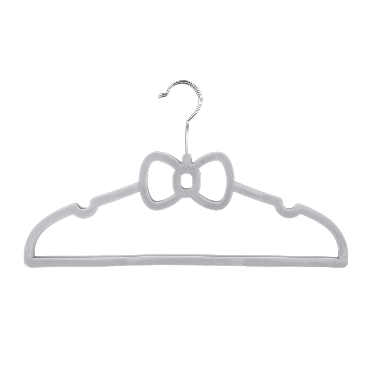 Set composto da 3 grucce con rivestimento vellutato e decoro centrale a forma di fiocco. Ideale per appendere qualsiasi capo: da cappotti a magliette, da vestiti a pantaloni. La forma inconfondibile permette di modellare la postura delle spalle senza deformare alcun capo, la barra orizzontale consente di appendere pantaloni senza la minima piega. Da 40x22 cm
