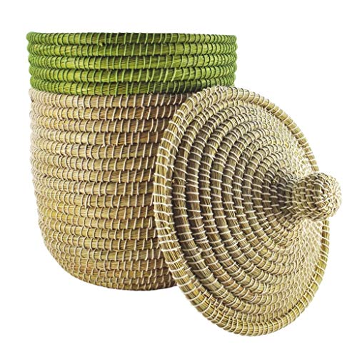 Gruener Handel Verde commercio Pom Pom - Cesto portaoggetti con coperchio - Commercio Equo E Solidale, verde, Ø 40cm