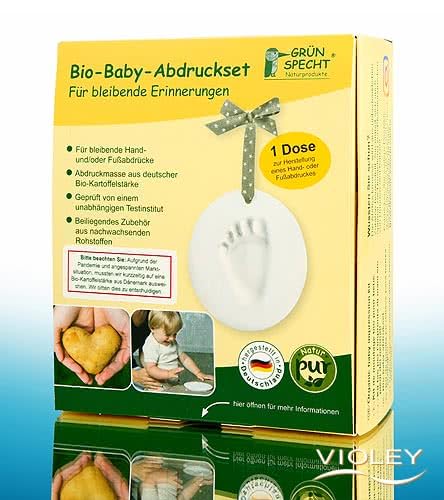 Gruenspecht - Set di impronte per bambini biologici, con fecola di patate biologiche, impronte di mani o piedi, accessori inclusi