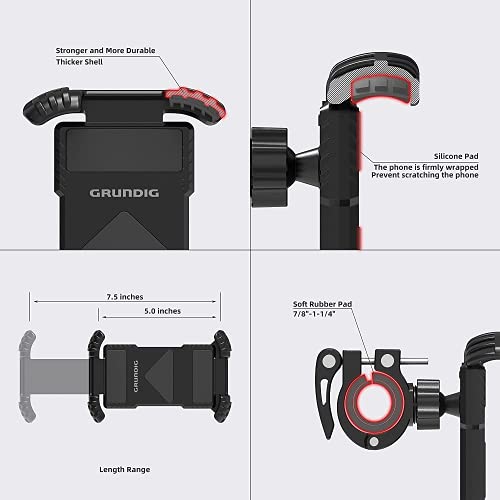 GRUNDIG Supporto per telefono da bicicletta, supporto per telefono da moto regolabile per iPhone 12 Pro Max, 11 Pro Max Xs XR 8 8P 7 7P 6S, Samsung S10 S9 S8, Huawei, tutti i dispositivi 4.7 "-6.8"