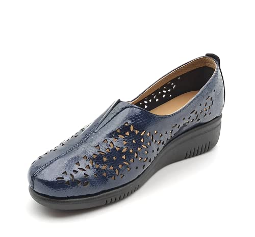 Grunland SIRA SC2695 Blu Scarpe Donna zeppetta Elastico Fori Pelle 41