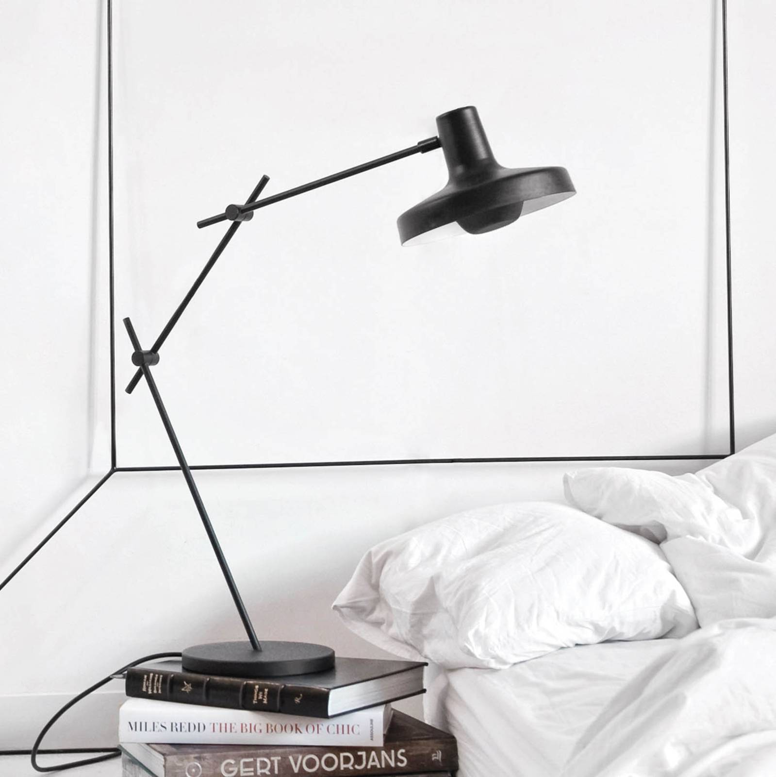 Flessibile lampada da tavolo Arigato con paralume rotondo e struttura in tre parti Con il suo design senza tempo, la lampada da tavolo Arigato del produttore croato GRUPA si adatta meravigliosamente ai più diversi concetti di arredamento. Non solo è adatto all'uso in salotto, ma è anche una fonte di luce funzionale per la scrivania grazie alla sua versatile regolazione. Ciò è possibile grazie agli snodi che collegano i tre sottili bracci in acciaio tra loro e al paralume. Quest'ultimo è realizzato in alluminio di forma rotonda, laccato di bianco all'interno e dotato di una copertura che consente di ottenere un'emissione di luce indiretta e allo stesso tempo a bassa dispersione. - Accendere il cavo a innesto - made in Europe
