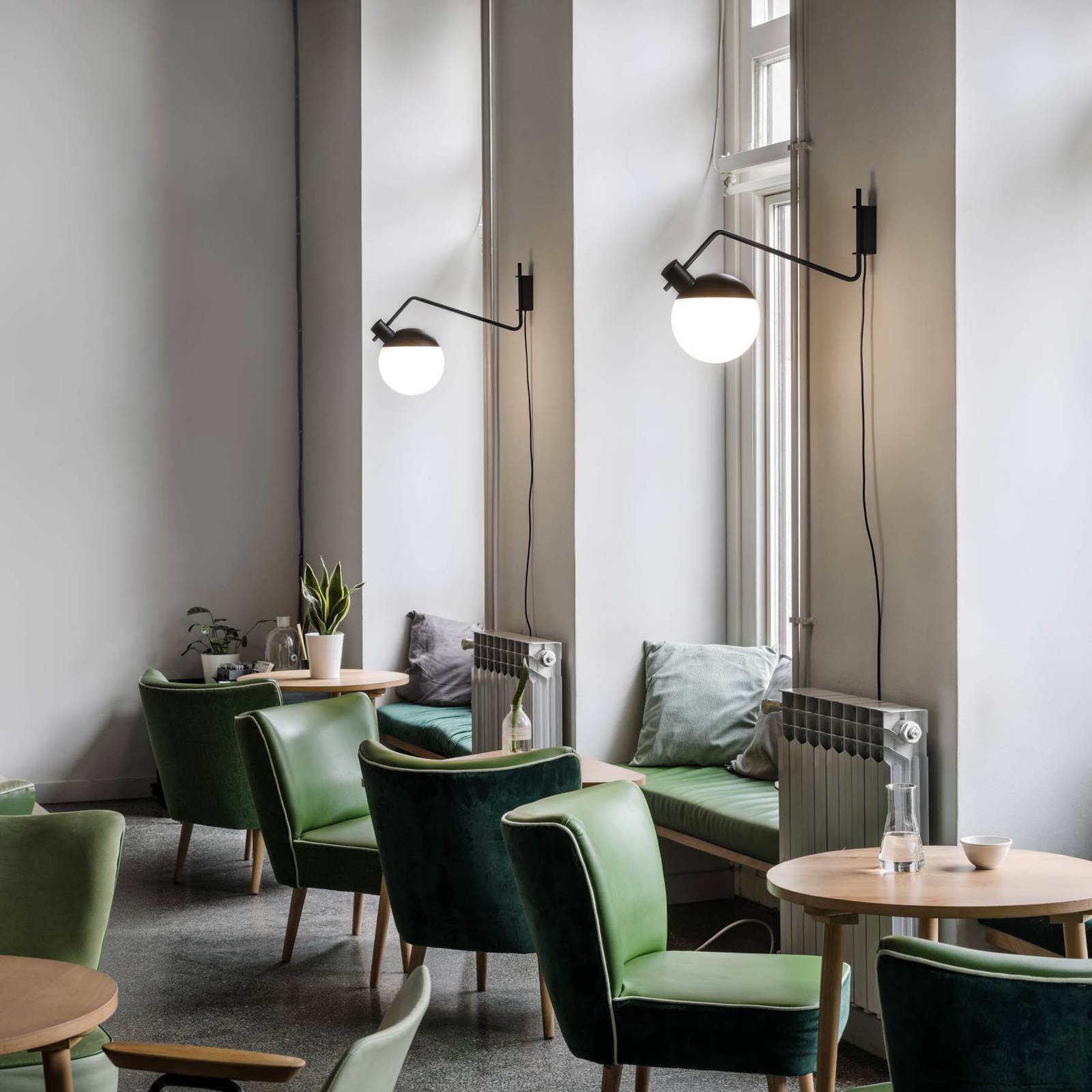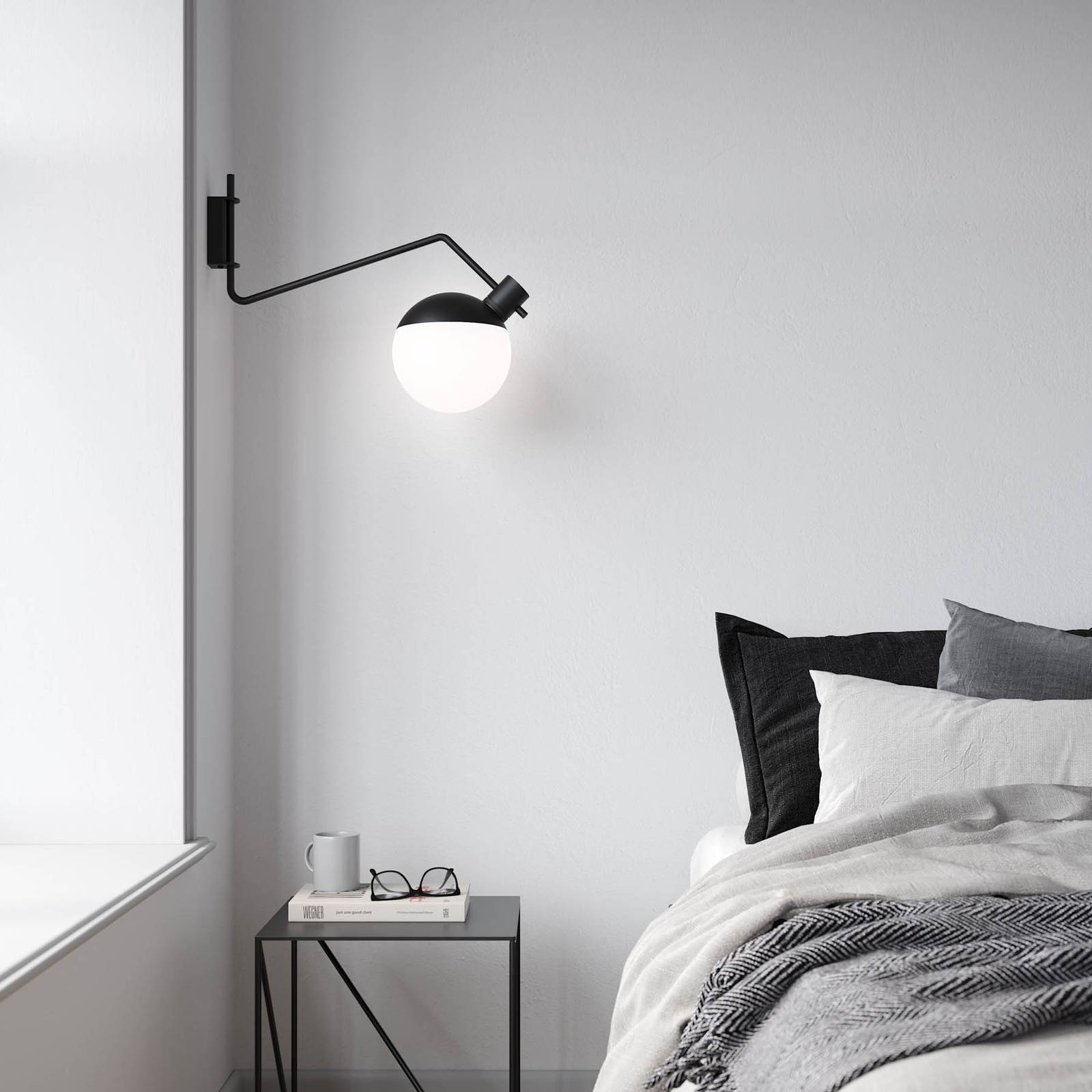 Lampada da parete a LED Baluna Medium con paralume sferico bianco e nero e braccio orientabile Con la sua versatilità e l'elegante combinazione di vetro opalino soffiato a bocca e alluminio laccato nero, la lampada da parete a LED Baluna Medium, progettata e prodotta dall'azienda croata GRUPA, è un elemento di spicco nelle zone living e lounge. Il suo paralume è progettato come una sfera;