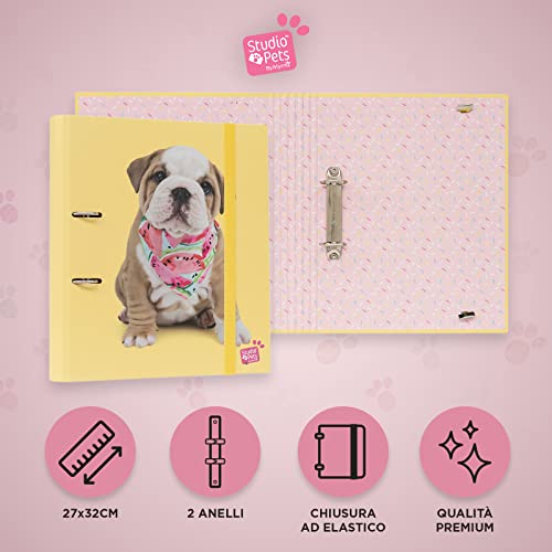 Grupo Erik: Raccoglitore A4 Studio Pets Dogs, Raccoglitore a 2 anelli con elastico e copertina rigida in cartone, 32 x 27 cm, Cartellina portadocumenti A4