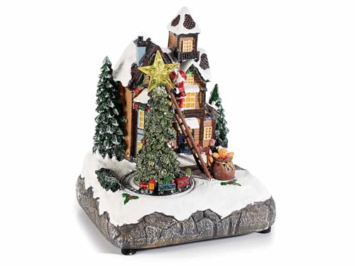 Gruppo Maruccia - Addobbo Natalizio Casa di Babbo Natale con Albero e Trenino in Movimento - Carillon per Decorare la Casa - Idea Regalo per Natale