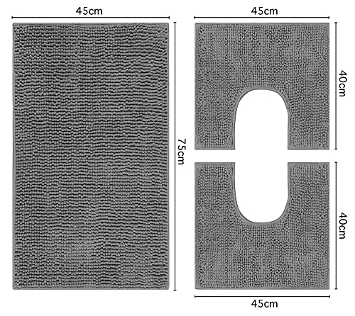 Il Gruppone Passione Casa Set Tappeti Bagno Con Fondo Antiscivolo Lavabili In Lavatrice Assorbenti 45 x 75 Cm 3 pezzi - Grigio