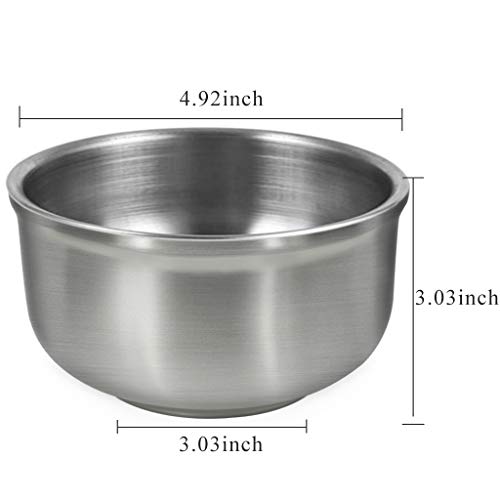 GRUTTI Ciotola da barba, shave tazza rasatura, in acciaio inox 304, dimensione profonda, Tazza termica infrangibile liscia a 3 strati iotola per sapone da barba (argento) (12,5 x 7,7 cm)