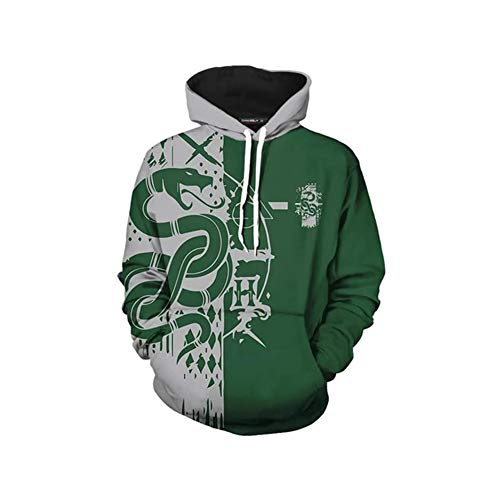 Gryffindor Ravenclaw Hufflepuff Slytherin Pullover Hoody,Harry Potter Long Sleeve Pullover Sweatshirt 3D Stampe Felpe Felpe con Cappuccio Tops Felpe per La Primavera E L'autunno Verde S