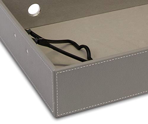 Generously sized rich grey faux leather Boxfile - Press button catch for securing lid - lock spring for clamping documents