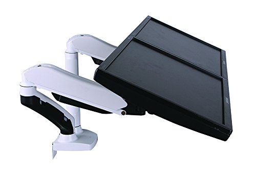 GSA22DS Gas Spring Desk Mount Double Twin LCD Monitor Arm Stand in White w/vesa Bracket & Monitor Arm: Free up/Down & Left/Right Motion
