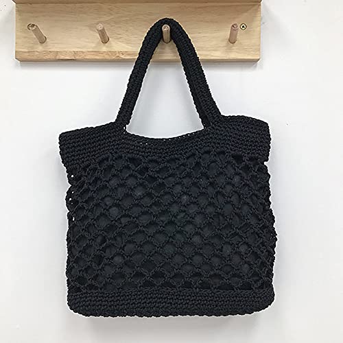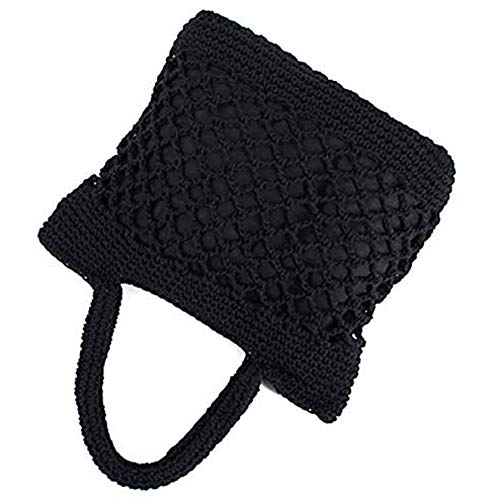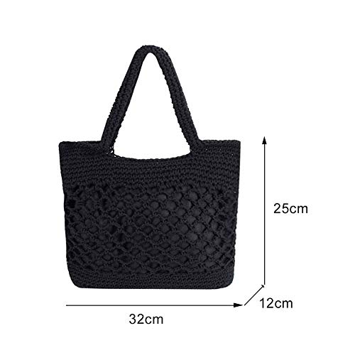 GSenhui Borsa a mano da donna, borsa a tracolla, borsa a tracolla, in cotone, estiva, borsa da spiaggia, grande con chiusura lampo, borsa in paglia fatta a mano per spiaggia, viaggi, shopping, Nero
