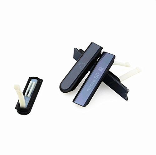 GSHENG Porta di Ricarica USB Dust Plug Cover Flap Per Sony Xperia Z Micro SD Card port SIM Card port Copertura Cap L36h C6603 C6602 (nero)