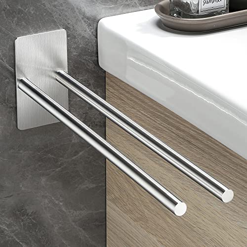 Gsocel Portasciugamani a Due Bracci in Acciaio Inox 304 Autoadesivo Porta Asciugamani Doppio Senza Foratura Portasalviette da Parete per Bagno e Cucina Argento 38CM