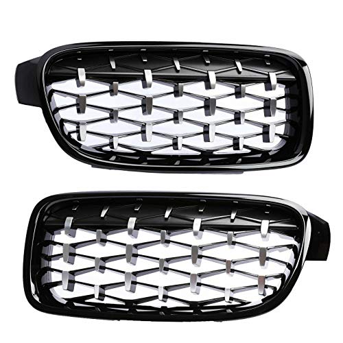 GSRECY Per F30 F31 2012-2018 Serie 3 318d 320d 330d 320i 328i 335i 335i xDrive Twin FIns Coppia griglia griglia paraurti anteriore Kindey (Diamond-Gloss Black)
