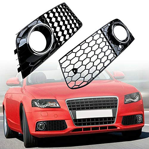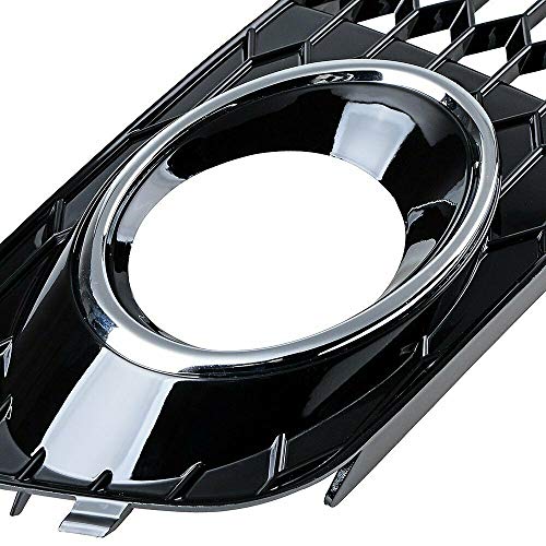 GSRECY 2 x Fendinebbia a nido d'ape nero lucido griglia paraurti inferiore della copertura della lampada adatta per 2008-2012 A4 B8 (finiture cromate)