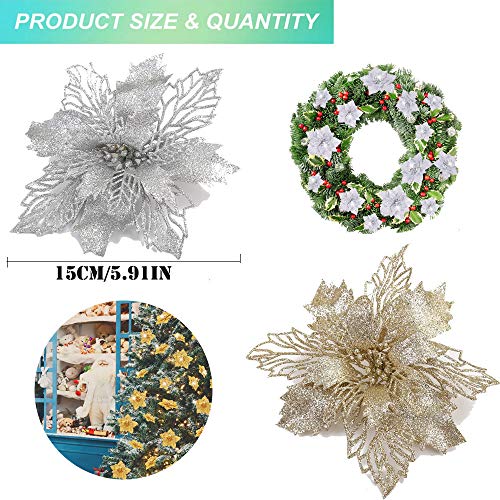 Gsyamh Fiore Artificiale Dorato d'Argento Natale Ornamento Floreale Dell'Albero di Natale Fiori Artificiali Glitter di Plastica Il Colore è Stupendo, Molto Adatto per La Decorazione Natalizia