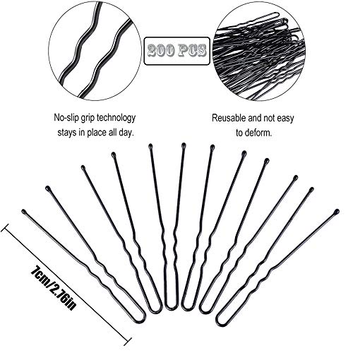 Gsyamh Forcine Per Capelli Ondulate Fermagli Per Capelli Da Donna a Forma Di U Nere Spilla Forcine Capelli Clip Accessori Per La Modellazione Adatto a Tutte Le Età,Facile Da Trasportare(200 Pezzi)