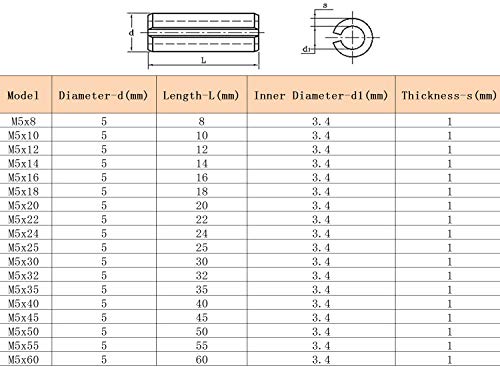 ★Specifica: Esempio: M5x8 (300 pezzi), riferito a un perno elastico con un diametro di 5 mm e una lunghezza di 8 mm, 300 pezzi per un set.