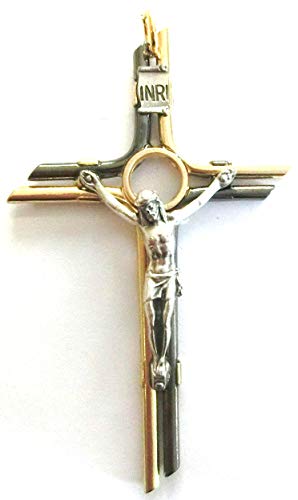 GTBITALY 10.157.26 Croce bastoni Incrociati 9 cm Oro nikel con Cristo Argento e Anello