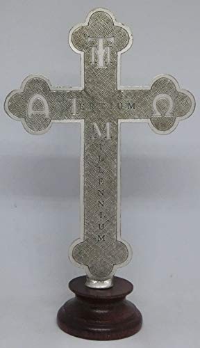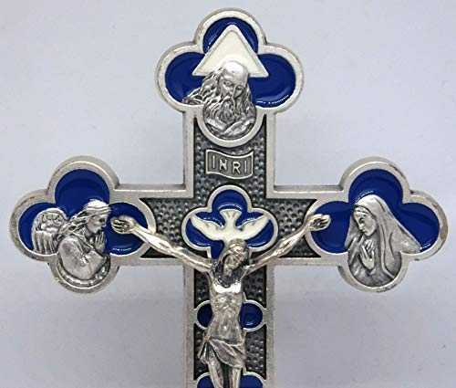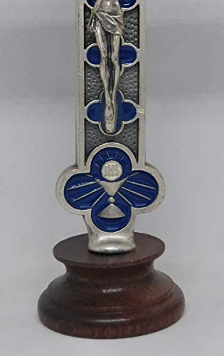 GTBITALY 10.054.31 Croce con Base Legno crocefisso Argento Terzo millennio Padre Figlio Spirito Santo Pace Comunione inri smaltato a Mano