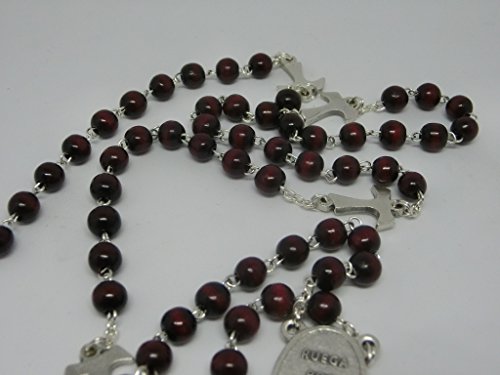 GTBITALY ROS02-6L Rosario Marrone francescano con Tau 70 + 5 grani Croce medaglia crocera San fracesco e Scritta ruega por nosotros