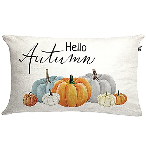 GTEXT Farmhouse Autumn Throw Pillow Covers Fall Fall Fall Covers Hello Autumn Pumpkins Federa per cuscino Autunno Casa Decorazione Lino 50 x 30 cm
