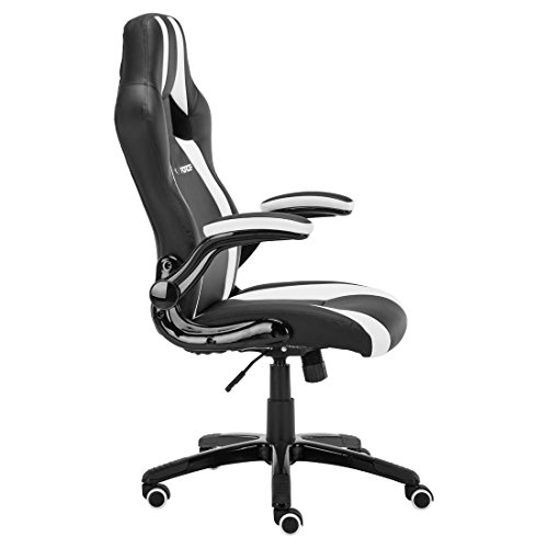 GTFORCE Roadster 2 - Sedia da ufficio in stile sedile di auto da corsa in pelle, con poggiabraccia regolabili White