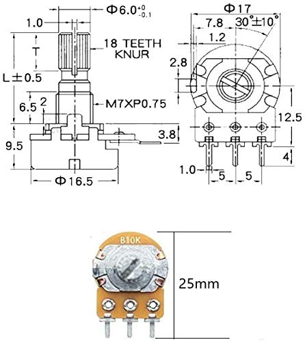 Valore di resistenza: B5K B10K B20K B50K B100K.