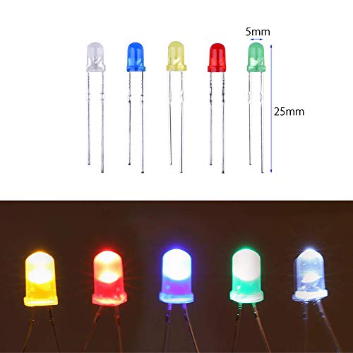 ★ Kit Completo di Assortimento LED: 500 pezzi di diodi a emissione luminosa con 5 colori rosso, verde, giallo, blu e bianco, confezionati in una custodia di plastica con vano diviso.