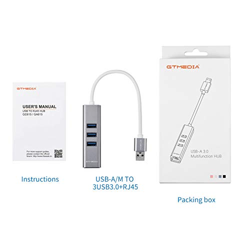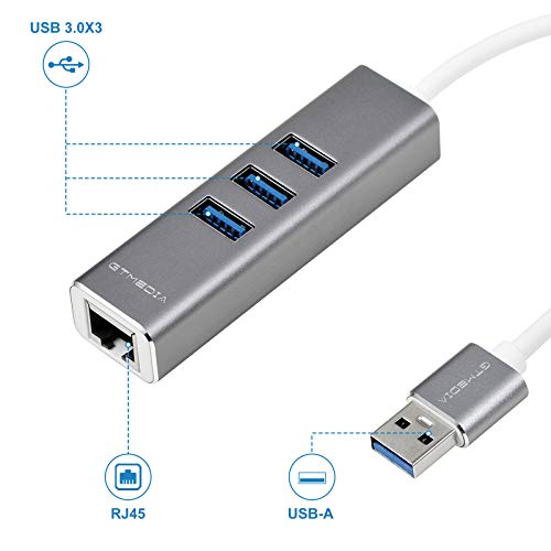 GTMEDIA Splitter trasferimento Dati, Hub Adattatore Gigabit Ethernet, Convertitore da USB-A 3.0 a RJ45 a 4 Porte 10/100/1000 Mbps, Compatibile con Win7 / 8/10, Mac OS, Linux e Vista