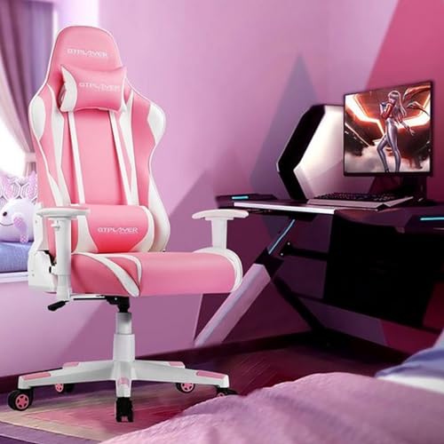 GTPLAYER Sedia da gioco da ufficio, Zocker Gamer, ergonomica, bracciolo regolabile, telaio in acciaio, angolo di inclinazione regolabile, rosa