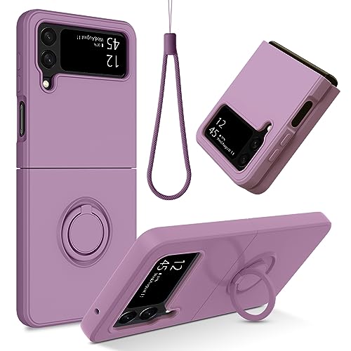 GUAGUA Cover per Samsung Galaxy Z Flip 4 in silicone liquido con supporto ad anello a 360, custodia per Samsung Z Flip 4, antiurto con fodera interna morbida, custodia per Samsung Z Flip 4 con