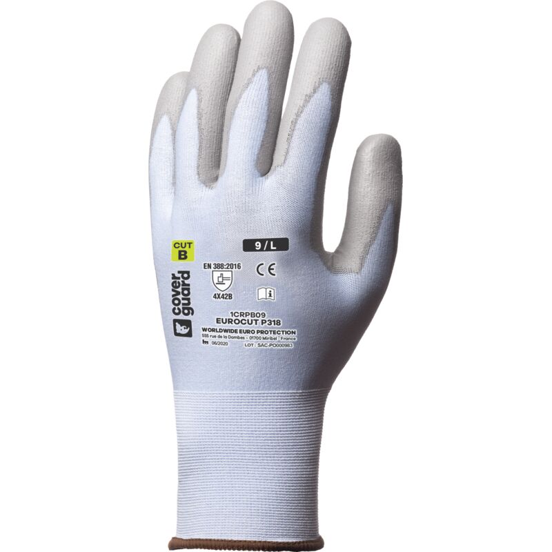 Caratteristiche: Venduto in confezioni da 5 paia Protezione antitaglio Massimo comfort, sensazione di "seconda pelle" Maneggio leggero in un ambiente asciutto Vita estesa: massima resistenza all'abrasione e allo strappo Polso elasticizzato per una migliore protezione dallo sporco Senza cuciture per evitare qualsiasi rischio di irritazione Colore del palmo poco sporco Soluzione ideale per compiti generici in ambienti asciutti (servizi igienici, lavorazione del legno, rifiuti e riciclaggio, plastica, elettronica, lavorazione del vetro, ecc.) Silicone garantito calibro 18 Composizione: Maglia senza cuciture in HPPE, nylon e spandex azzurro finezza 18 Rivestimento palmo in PU grigio Standard: EN420:2003+A1:2009 EN388:2016: Resistenza all'abrasione,Taglio,Lacrima,Foratura Questi guanti antitaglio Eurotechnique soddisfano la norma EN 388: Pertanto forniscono i seguenti livelli di resistenza: Resistenza all'abrasione: 4/4 Resistenza al taglio: X/5 Resistenza allo strappo: 4/4 Resistenza