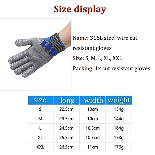 WXYZ Guanti Antitaglio Guanti resistenti a taglio di grado 9, guanti da lavoro di sicurezza in acciaio inox, utilizzato per la pesca, rimozione delle ostriche, guanti da giardino in maglia di giardina