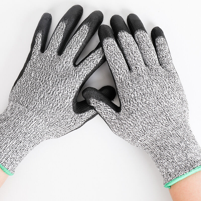 usura, realizzati con materiali confortevoli, pregevole fattura e buon effetto antipolvere. 02 Morbido Tessuto confortevole, design ergonomico, tredici punti sono intrecciati, comodo e sicuro da indossare. uso. 03 collant Passante elastico per il polso, design del polsino elastico umanizzato, nessun serraggio, nessun allentamento, migliora il comfort 04 resistente all'acqua wear PU poliuretano, vengono utilizzati la punta delle dita e il palmo del guanto e il rivestimento in PU lo rende resistente e non facile da rompere. break Caratteristiche: Nome del prodotto: Guanti touchscreen resistenti al taglio di livello 5 Materiale di rivestimento Fodera: poliuretano PU Materiale della fodera: HPPE + fibra di vetro + elastan Peso del prodotto: 65 ± 5 g/paio Lunghezza del prodotto: 230 mm Area di applicazione: officina di produzione, produzione automobilistica: produzione di vetro, logistica e trasporti