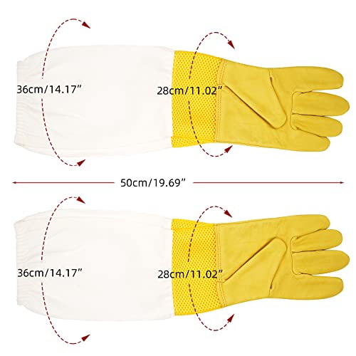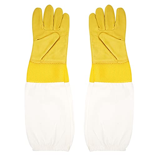 Guanti da Apicoltura Guanti in Pelle di Capra Spessi Guanti da Apicoltore con Tela Ventilata Maniche Lunghe Polsini Elastici Ventilati Guanti Protetti da Apicoltore per Protezione Mani Apicoltori (XL)