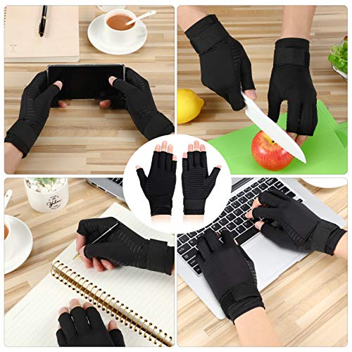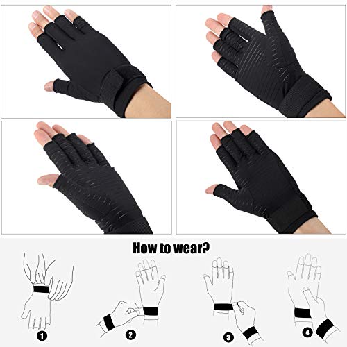 2 Paia Guanti per Artrite a Compressione con Cinturino Guanti in Rame a Mezzo Dito Infuso di Rame Guanti a Compressione in Rame Supporto per Tunnel Carpale, Artrite, Sollievo Dolore