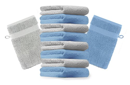 Betz Set di 10 Guanti da Bagno Premium Misure 16 x 21 cm 100% Cotone Azzurro e Grigio Argento