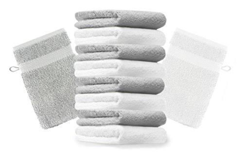 Betz Set di 10 Guanti da Bagno Premium Misure 16 x 21 cm 100% Cotone Grigio Argento e Bianco