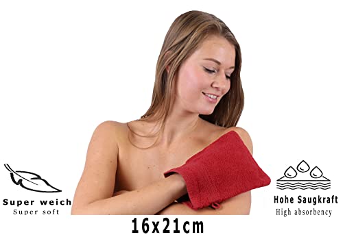 Betz Guanti da Bagno Premium 10 Pezzi - Guanti in Spugna per detersione Delicata del Viso - in 100% Cotone - Guanto da Bagno per Bambini Rosso Scuro