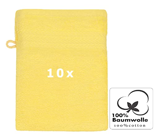 Betz Guanti da Bagno Premium 10 Pezzi - Guanti in Spugna per detersione Delicata del Viso - in 100% Cotone - Guanto da Bagno per Bambini Giallo