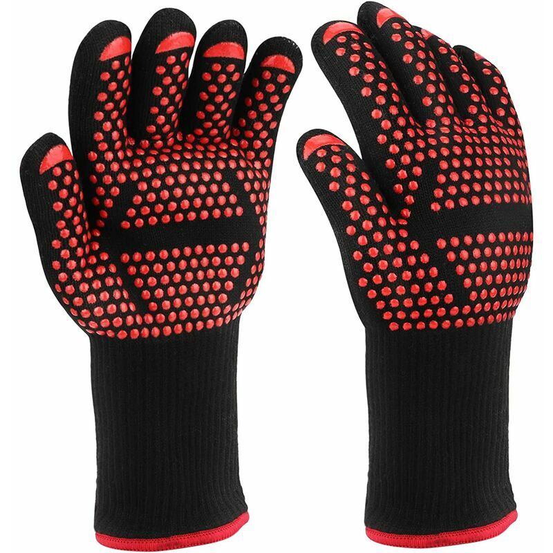GUANTI DA FORNO GRILL RESISTENTI AL CALORE - I guanti da barbecue sono realizzati in fibre di aramide per fornire la massima protezione dal calore fino a 800°C. Questa elevata resistenza al calore rende i guanti da barbecue un materiale ideale per grigliare, cuocere al forno e cenare all'aperto. 【PROTEZIONE DEL POLSO ESTESA E TRASPIRANTE】 Questi guanti da barbecue possono proteggere efficacemente braccia e polsi da scottature e ustioni. I polsini di questi guanti da barbecue sono realizzati con materiali super traspiranti che ti consentono di portare aria fresca per evitare che le tue mani sudino alle alte temperature. 【SILICONE ALIMENTARE ANTISCIVOLO】 I guanti da barbecue sono rivestiti in superficie con silicone alimentare. Il design in silicone antiscivolo dei guanti da griglia ti offre una presa salda. Questi guanti da forno assicurano che nulla scivoli dalle tue mani. 【FACILE DA INDOSSARE, PULIRE E CONSERVARE】 I guanti da barbecue non fanno differenza tra la mano destra e quella