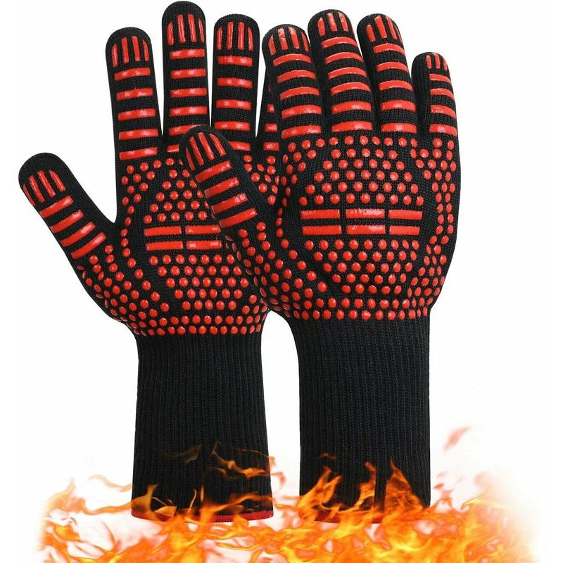 Resistenza al calore estremamente elevata fino a 800°C - I guanti hanno un'elevata resistenza al calore, quindi sono ampiamente utilizzati . Quando brucia, viene utilizzato in stufe e caminetti. Puoi trasportare coperture per bruciatori molto calde o stufe a legna molto calde senza disagio. La lunghezza totale del polso e dell'avambraccio è di 33 cm. I guanti coprono i polsi e le mani e offrono un'eccellente protezione quando si maneggiano oggetti caldi. I guanti da barbecue possono essere lavati in lavatrice. Poiché hanno le dita, sono facili da impugnare e non sono troppo ingombranti, quindi sono facili da afferrare e sollevare. Grazie a tutti i rinforzi in silicone, sono molto antiscivolo in modo che il gli spiedini non scivolano. t cadono le mani scivolano. I guanti sono indossati con due mani. Non c'è alcuna influenza. Guanti da forno avanzati con materiale confortevole e design umanizzato: lo strato interno è realizzato in poliestere-cotone, che ha un migliore assorbimento del