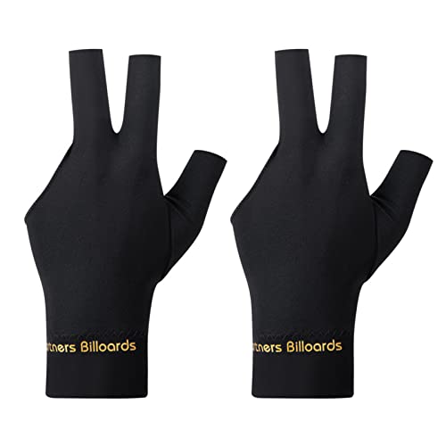 Guanti da Biliardo Snooker, Guanti da Biliardo, Guanti da Biliardo a Tre Dita, Adatto per Biliardo, Snooker, Giochi di Carrom 2 Pezzi Nero Tokaneit