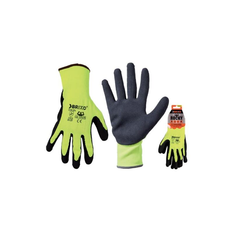 Guanti Brixo Rocky Acrilico Spandex/Lattice schiuma Dorso acrilico/spandex, palmo lattice sabbiato. Ottima flessibilità, elevata resistenza all'usura e sensibilità tattile. Ulizzo: Forestale, manutenzione generale, agricoltura, logistica & magazzino, hobby, giardinaggio, controllo qualità. Certificazioni EN388:2016 - 2131X-EN420 Taglia L