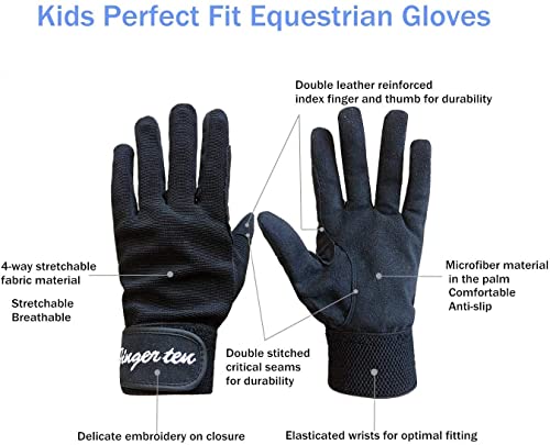 Guanti da cavallo, per bambini, ragazzi, ragazze, equitazione, per esterni, comodi e durevoli, 5-13 anni (M, nero)